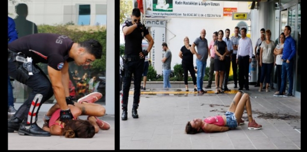 Antalya'da PTT şubesindeki ATM'den para çekmek isteyen Dilara Ö., parasını alamadığı gibi kartı da makineye sıkıştı. Yüksek sesle tepkisini dile getiren Dilara Ö., özel güvenlik görevlilerinin müdahalesiyle sinir krizi geçirdi. Çağrılan polis Dilara Ö.'ye ters kelepçe takarak yere yatırdı ve gözaltına aldı.