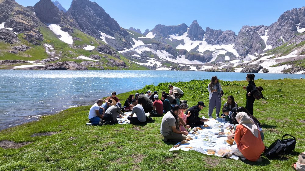 Bölgede kahvaltı yapan dağcılar, daha sonra İkiyaka'da bulunan Sat Gölleri'nde yürüyüş düzenledi.
