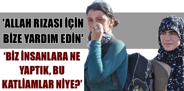 Süleyman Ravi Faris'in gelini Hında ile konuşuyoruz. Birkaç aylık evli. Nefes nefese kalmış ve göz yaşlarına hakim olamıyor. Ölümü göze alarak buraya geldiklerini belirterek, "Dinimizi değiştirmemizi istediler. Ancak biz dinimizi değiştirmedik. Onun için kaçtık. Yola çıktık, Nıseriye'ye kadar gelebildik. Peşimize düştüler ancak onlardan uzaklaştık. Kadınların hepsini götürdüler, erkekleri öldürdüler, bazılarını da yakalayıp götürdüler. Tanıdıklarımızın başına nasıl geldiğini bilmiyoruz. Bu halimizle kaçtık. Allah rızası için bize yardım edin" şeklinde konuştu.