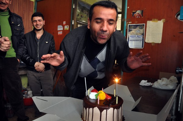 Daha sonra alkışlar eşliğinde Cahit Yiğit doğum günü pastasının üzerinde bulunan mumları üflerken, ardından çalışma arkadaşları ile doğum gününü kutladı.