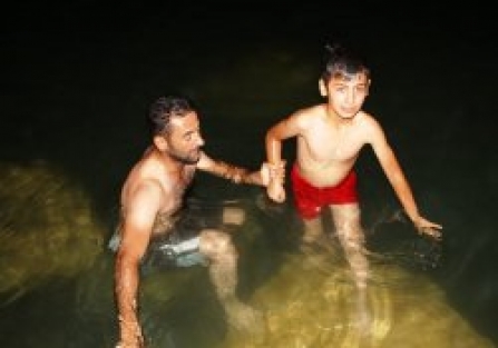 Bazı vatandaşlarsa gecenin karanlığına aldırış etmeden yüzme keyfini yaşamak için Van Gölü’ne giriyor.