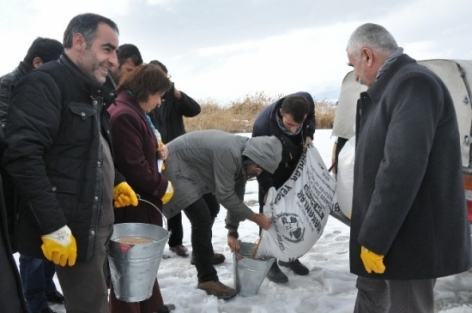 Bölge genelinde ve Van’da yoğun kış şartları nedeniyle yiyecek bulmakta sıkıntı yaşayan hayvanlar için İpekyolu Belediyesi, kırsal kesimlere ve Erçek Gölü etrafına yem bıraktı. İpekyolu Belediyesi Eş Başkan yardımcıları Nermin Unat ve Halis Çakır ile Park ve Bahçeler Müdürü Esmer Kara, Erçek Gölü kenarına yem bıraktılar.