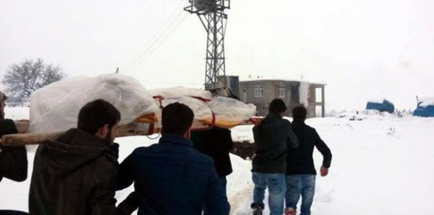 DİYARBAKIR'ın Hani İlçesi'ne bağlı Çukur Köyü'nde hastalanan 70 yaşındaki Hamide Oruç, dün köy yolunun yoğun kar yüzünden kapalı olması nedeniyle, yakınları ve komşuları tarafından, battaniye sarılarak tahtadan yapılan sedye ile omuzlarda 6 kilometre taşınarak hastaneye getirildi. Hastanede ilk müdahalesi yapılan Oruç, sevkedildiği Diyarbakır'da hayatını kaybetti.