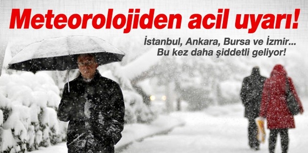 Meteoroloji yılın ilk hafta başı için uyarı yaptı. Pazartesi gününden itibaren yeniden soğuk hava dalgası geliyor. Özellikle salı, çarşamba, perşembe günlerinin çok soğuk olması bekleniyor. Soğuk ve yağışlı hava 2015’in ilk günlerinde de Türkiye’nin büyük bölümünde etkili olacak.