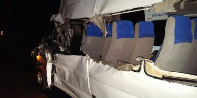 NİĞDE'de bir minibüs ile TIR'ın çarpışması sonucu meydana gelen trafik kazasında 20 kişi yaralandı.