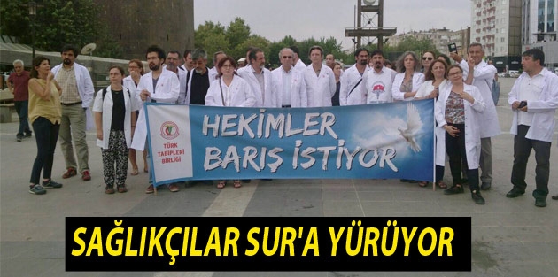Polisin saldırılarını tırmandırdığı ve sokağa çıkma yasağının ilan edildiği Diyarbakır'ın Sur ilçesinde yaşananlara dur demek için sağlık emekçileri yürüyüşe geçti. İstanbul, Ankara ve Adana TTB Merkez Konseyi üyelerinin de aralarında bulunduğu sağlık emekçileri, Diyarbakır'ın Silvan ilçesinde incelemelerde bulunacaktı. Ancak polis saldırılarının Sur'da yoğunlaşması üzerine Silvan programını iptal eden sağlık emekçileri, Azizoğlu Oteli önünde bir araya gelerek Şeyh Sait Meydanı'na yürüdü. "Hekimler barış istiyor" pankartını taşıyan sağlık emekçileri, yürüyüş esnasında sık sık "Yaşamak ve yaşatmak istiyoruz", "Hekimler barış istiyor" ve "Savaşa hayır barış hemen şimdi" sloganları attı. Meydanda oturma eylemi yapan sağlık emekçileri daha sonra saldırıların yoğun olduğu Sur'un mahallerine yürümek istedi, ancak polisin engeline takıldı. Sağlık emekçilerinin bekleyişi sürüyor. DİHA