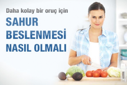 Sahurda yenilen yemeğin de fazla ağır olmaması gerekiyor. Uzmanlar sahuru erken kahvaltı gibi düşünerek gün boyunca tok tutacak, kan şekerinizin düzenli seyretmesini sağlayacak protein içeriği yüksek besinlerden oluşan bir kahvaltı hazırlanmanız tavsiyesinde bulunuyor. Gıda Mühendisi Nilüfer Hakarayan, sahurun kahvaltı öğünü gibi düşünülüp kahvaltıda yenilen tarzda yiyeceklerin tercih edilmesini ve bol miktarda sıvı tüketilmesini öneriyor.