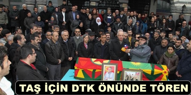 Burada sarı, kırmızı, yeşil flamalara sarılan Taş'ın cenazesi için tören düzenlendi. Törene, TUHAD-FED Genel Başkanı Zübeyde Zümrüt, Diyarbakır Büyükşehir Belediyesi Eş Başkanı Gültan Kışanak, DTK ve DBP üyeleri, çok sayıda STÖ temsilcisi ile yüzü aşkın yurttaş katıldı. Demokrasi ve özgürlük mücadelesinde yaşamını yitirenler anısına saygı duruşunda bulunulmasının ardından konuşan DTK Eş Başkanlık Divan üyesi Hilmi Aydoğdu, Taş'ın Kürt Halk Önderi Abdullah Öcalan'ın çağrısı üzerine barış ve özgürlüğü inşa etmek amacıyla Türkiye'ye geldiğini, ancak devlet ve hükümet tarafından tutuklanarak cezaevine konulduğunu hatırlattı.