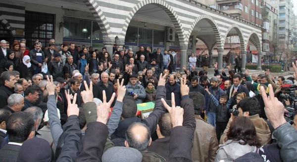 Diyarbakır D Tipi Kapalı Cezaevi'nde sabaha doğru geçirdiği kalp krizi sonucu yaşamını yitiren 2009 Barış Grubu üyesi Lütfü Taş'ın, Selahattin Eyyübi Devlet Hastanesi'nde yapılan otopsi işlemlerinin ardından alınan cenazesi, Demokratik Toplum Kongresi (DTK) binası önüne getirildi.