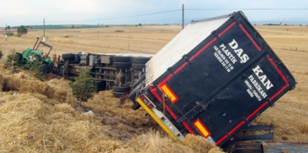 Kaza, Bandırma-Balıkesir karayolunun 15'inci kilometresinde Kuşccenneti mevkiinde dün gece saat 01.45 sıralarında meydana geldi. 52 yaşındaki Musa Mersin'in idaresindeki 45 TV 393 plakalı TIR, önünde seyreden 28 yaşındaki İsmail Ekin'in idaresindeki saman yüklü 10 NY 507 plakalı traktöre arkadan çarptı. Çarpmanın şiddetiyle iki araç da yol kenarındaki tarlaya uçtu.
