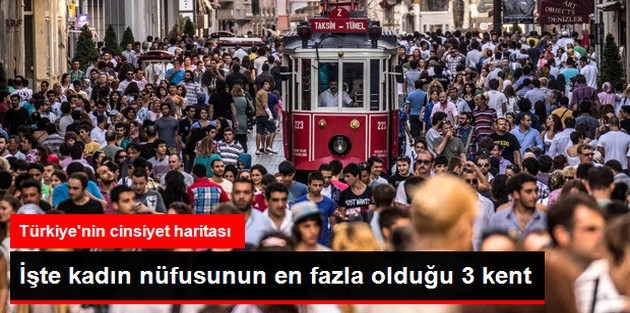 TÜİK, Türkiye'nin illere göre kadın-erkek haritasını çıkardı. Konuya ilişkin açıklamalarda bulunan TÜİK Diyarbakır Bölge Müdürü Mehmet Salih Uras, Türkiye'de 2013 yılında kadın nüfusunun fazla olduğu il sayısı 32 iken, bunun 2014'te 37'ye çıktığını belirtti. Uras, erkek nüfusunun fazla olduğu il sayısının ise 49'dan, 44'e düştüğünü ifade etti. Kadın nüfusunun fazla olduğu illerin başında yüzde 50,8 ile Bartın'ın geldiğine dikkat çeken Uras, Tunceli'nin ise yüzde 55,4 ile erkek nüfus oranının en fazla olduğu il olarak belirlendiğini kaydetti.