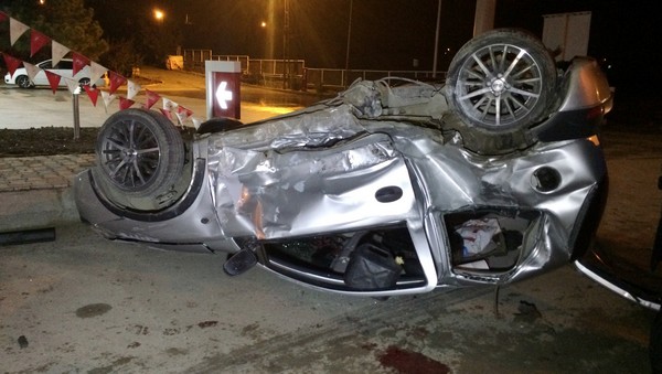 Van'da meydana gelen trafik kazasında iki kişi yaralanırken, kaza yapan otomobilin takla atarak petrol istasyonu yanında durması sonucu büyük panik yaşandı.