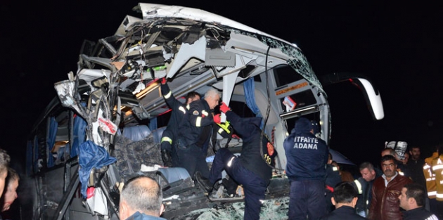 ADANA'da sunta yüklü TIR'a arkadan çarpan otobüste sürücü 26 yaşındaki Hamit Şimşek ile üniversite öğrencisi 22 yaşındaki Zeynep Dönmez öldü, 12 kişi de yaralandı.