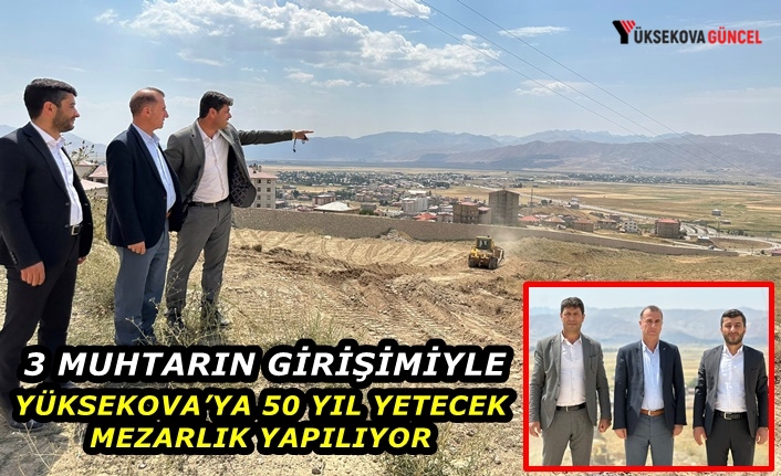Yüksekova Esenyurt Mahallesi Muhtarı Selim Genç, Yeni Mahalle Muhtarı Kerem Demir ve Esentepe Muhtarı Turgut Atalay’ın yaptıkları girişim sonucu ilçe merkezine 3. mezarlık kazandırırken, ilçeyi 50 yıla kadar götürecek mezarlık olacak.