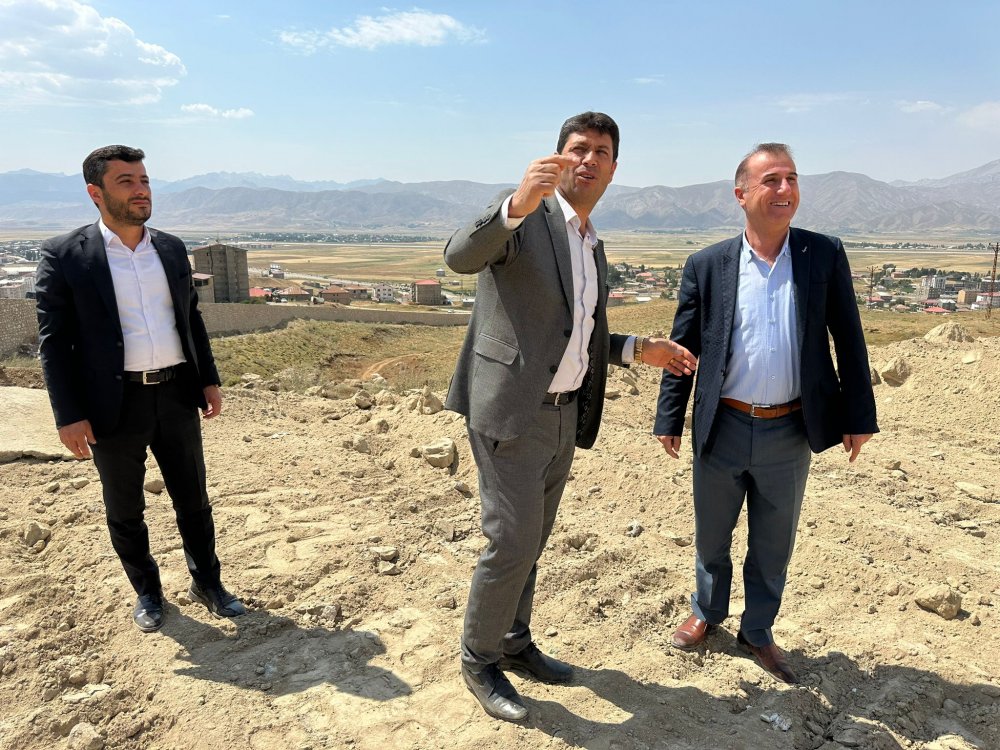 Mezarlığın yapıldığı araziyi inceleyen 3 mahalle muhtarı yapılan çalışmalar hakkın da bilgi aldılar.