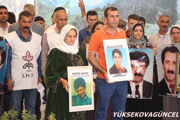 Hakkari'nin Yüksekova ilçesinde kayıp yakınları ve İHD temsilcileri, "faili meçhul" cinayetlere kurban gidenlerin akıbetini sormak ve faillerin yargılanması talebiyle 17'nci haftada da Sanat Sokağı'nda açıklama yaptı.