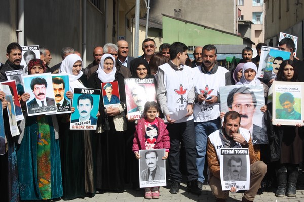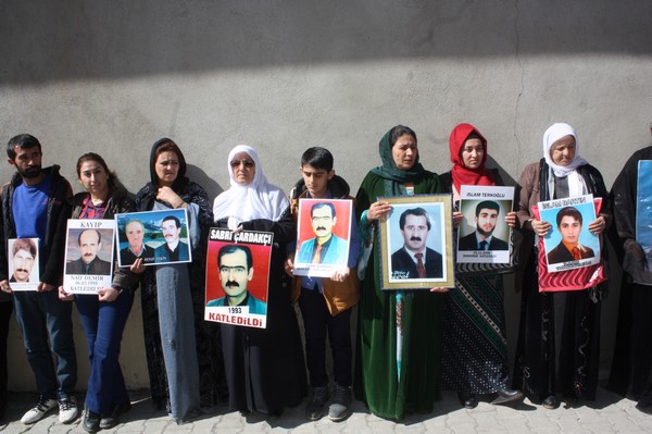 Yüksekova'da Sanat Sokağında bir araya gelen kayıp yakınları bu haftaki eyleminde Nurettin Aksoy'un akibetini sordu.