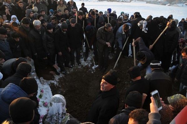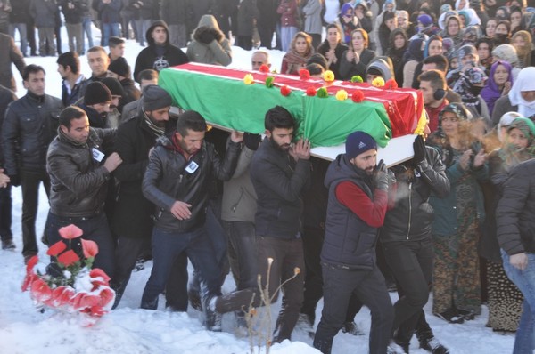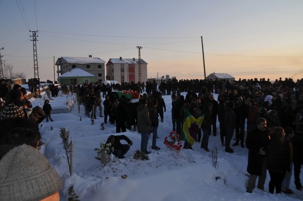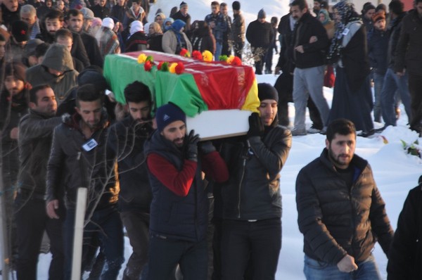 YÜKSEKOVA-Yüksekova ilçesinde dün gece saatlerinde ilan edilen sokağa çıkma yasağıyla beraber Eski Kışla Mahallesi'ne yapılan operasyonda Kobra tipi zırhlı araçtan açılan ateşle öldürülen Cafe işletmecisi Ersin Aydın'ın cenazesi, dondurucu soğuğa rağmen kitlesel bir şekilde toprağa verildi.