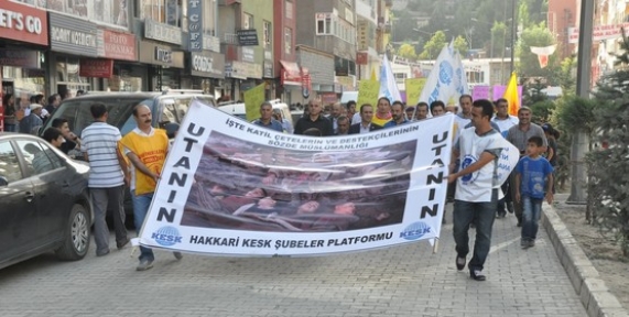 KESK Hakkari Emek Platformu'na bağlı emekçiler, düzenledikleri yürüyüş ve sonrasında yaptıkları basın açıklamasıyla Rojava'da yaşanan katliama tepkilerini gösterdi. KESK merkezinden Hakkari Belediyesi binası önüne kadar yapılan yürüyüşte, Rojava'da katledilen çocukların fotoğraflarının yer aldığı bir pankartın üzerinde "Utanın" yazısı yer alırken, "Bîjî berxwedana Rojava", "Rojava halkı yalnız değildir", "El-Nusra cephesi, AKP çetesi" dövizleri taşındı.