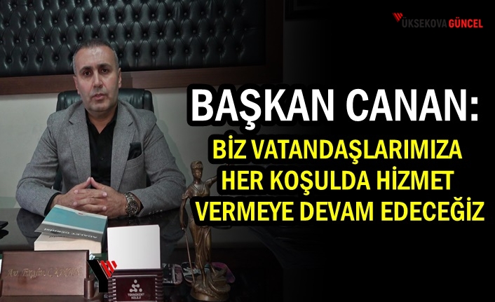 3'üncü kez Hakkari Baro başkanlığına seçilen Av. Ergün Canan, Hukukun üstünlüğüne inanarak vatandaşlarımıza her koşulda hizmet vermeye devam edeceğiz. dedi