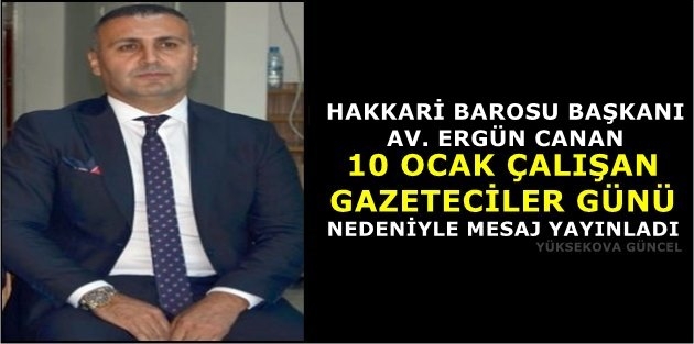 Hakkari Barosu Başkanı Av. Ergün Canan ’10 Ocak Çalışan Gazeteciler Günü’ nedeniyle mesaj paylaştı.