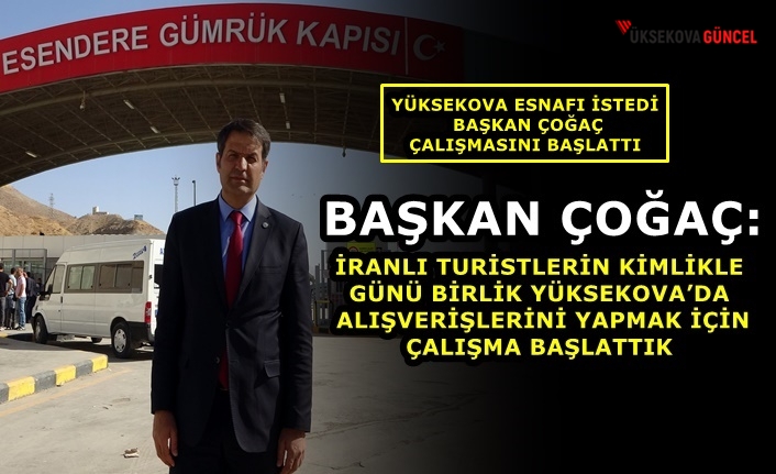 Yüksekova Esnaf ve Sanatkarlar Odası Başkanı Vedat Çoğaç, İranlı turistlerin kimlikle günübirlik Yüksekova'da alışverişlerini yapması için çalışma başlattıklarını belirtti.