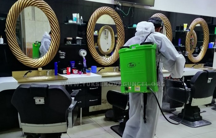 Yüksekova Esnaf ve Sanatkar Odası Başkanı Vedat Çoğaç; berber, kuaför ve güzellik salonlarını dezenfekte ettiklerini ve tamamına maske desteği vereceklerini söyledi.