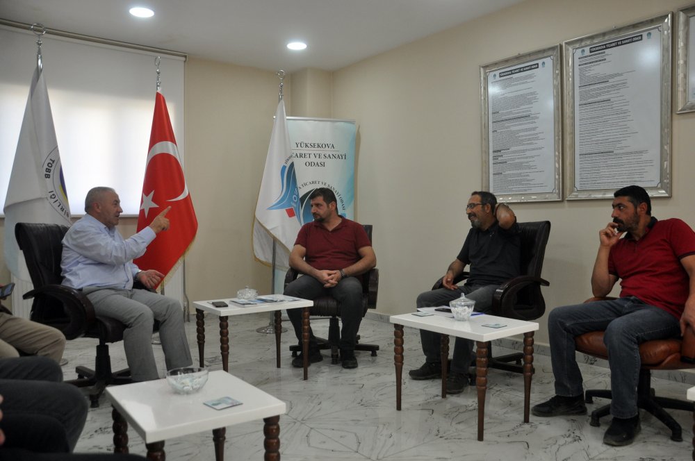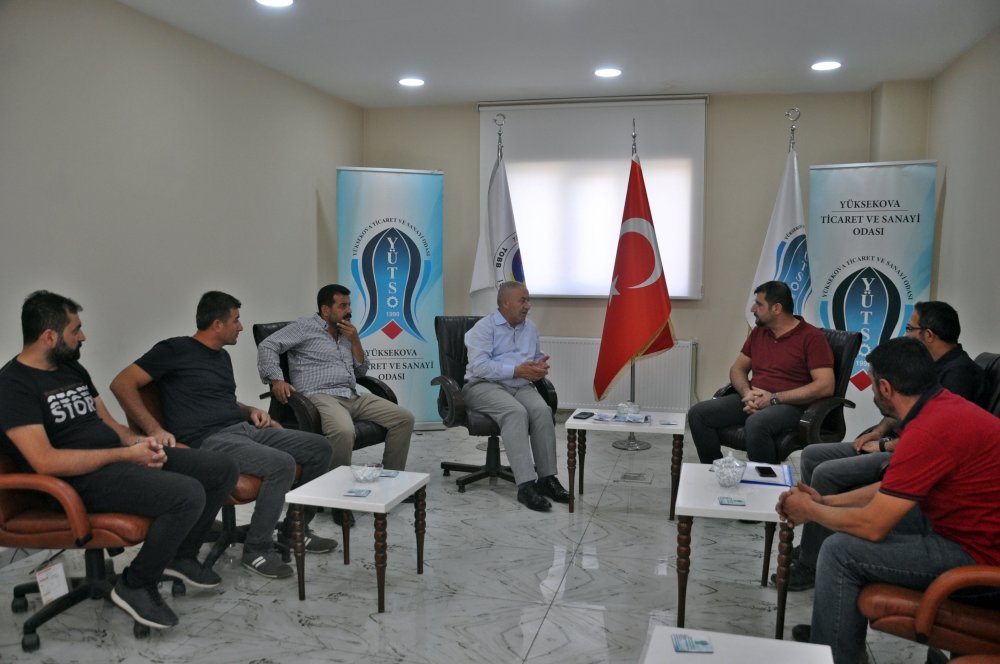 Yüksekova Ticaret ve Sanayi Odası (YÜTSO) Başkanı Abdurrahman Pınar'ın makamında bir araya gelen Kooperatif başkanı Doğma ve üyeleriyle baraber, Sanayi sitesinin gelişimi yönünde ve sanayi esnafının dükkan sıkıntısı bitirmek için görüştüler.