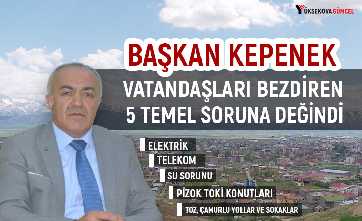 Yüksekova Esnaf Sanatkarlar Kredi ve Kefalet Kooperatifi Başkanı Sabahattin Kepenek, vatandaşları bezdiren 5 temel sıkıntı olan Elektrik, Telekom, su, Toz,Çamurlu Yollar ve Sokaklar adlı başlıklar üzerinde konuya değinerek, yetkililerden çözüm bulmasını istedi.
