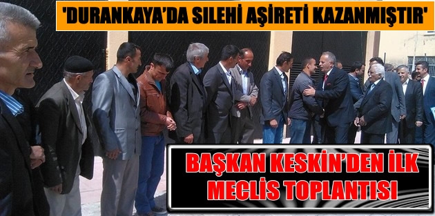 Hakkari’nin Durankaya Belde Belediye Başkanı Fatih Keskin, devir teslim töreninin ardından meclis toplantısı yaptı. Belediye meclis salonunda gerçekleştirilen toplantı, saygı duruşu ile başladı. İlk defa kapsamlı ve halka açık olarak yapılan toplantıya beldenin illeri gelenleri, belde sakinleri ve muhtarlar katıldı. Soru cevap şeklinde geçen toplantıda beldede yeni yapılacak yatırımlar ele alındı.