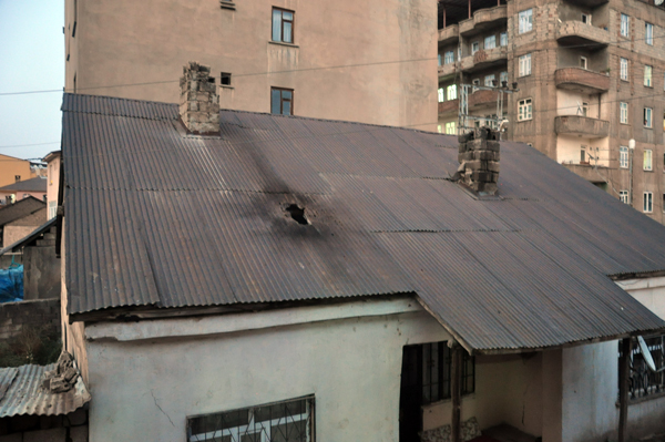 YÜKSEKOVA- Hakkari’nin Yüksekova ilçesinde akşam saatlerinde bazı evlere havan mermisi isabet etti.