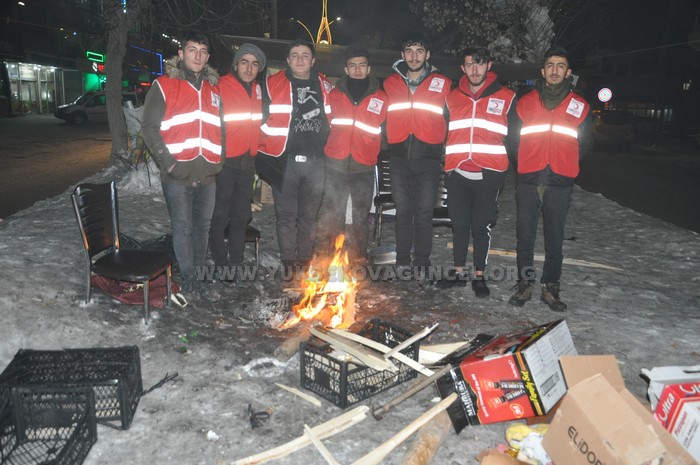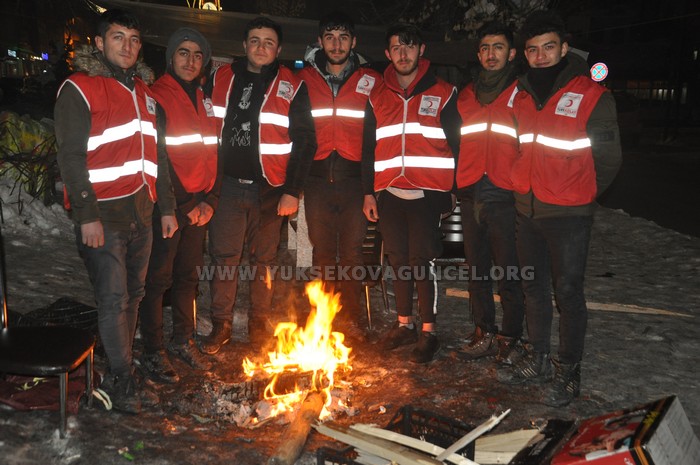 Eksi 25 derecede yardım toplayan Kızılay üyeleri, tenekede attıkları odunları yakarak ısınmaya çalıştılar. Konuyla ilgili konuşan Yüksekova Kızılay Şube Başkanı Yılmaz Göksal, "Yüksekova Kızılay Şubesi gönüllü gençleri gece gündüz, kar kış demeden Elazığ için bir araya geldiler. Zaman ve işlerine ara verip adeta bir orkestranın enstrümanları gibi bir araya geldiler. Her biri kendi çevresine bir ses vererek gecenin soğuğuna rağmen yardım topladılar. Bu bir vicdani hassasiyettir. Bir inanç meselesidir. Bir basirettir. Gençlerimizin bizlere, büyüklerimize tam bir örnek abidesi olduğunu gösterdiler. Oturduğu yerden söylemek değil eylemleri ile bizleri duygulandırdı. Bu bağışlar için ilgi ve alakaları halkımıza, esnafımıza, öğretmenlerimize, gençlerimize tüm gönüldaşlarımıza teşekkür ederiz" dedi.