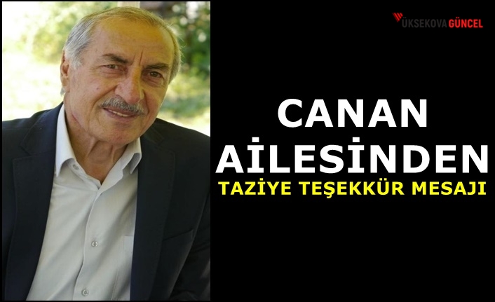 CANAN AİLESİ MESAJINDA, "Tüm eş, dost, akraba ve hemşehrilerimiz gerek cenaze törenine ve gerekse taziyemize gelerek veya telefonla arayarak bizleri bu acı günümüzde yalnız bırakmadılar. Uzaktan yakından cenazemize katılan, taziye ziyaretinde bulunan, mesaj gönderen, telefonla başsağlığı dileyen, Yurt içinde ve Yurt dışında başta İran ve Irak olmak üzere internet aracılığı ile mesajını ileten, definden önce ve sonra taziyemize gelip acımızı paylaşan, tüm kanaat önderlerine, yerel yöneticiler, Milletvekillerine, belediye başkanları, siyasi parti temsilcileri, kurum amirleri, Mahalle Muhtarlarına, gazeteciler, baro başkanları, öğretmenler, sağlıkçılar Türkiye'nin her yerinden dualarını esirgemeyen akrabalarımıza, Maddi ve Manevi desteklerini bizlerden esirgemeyen herkese şükranlarımızı sunarız" İfadeleri kullanıldı.
