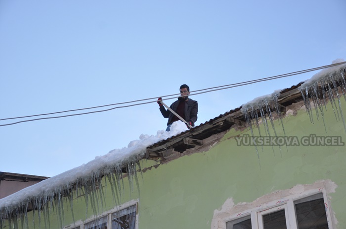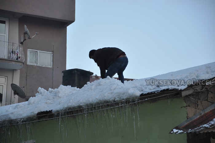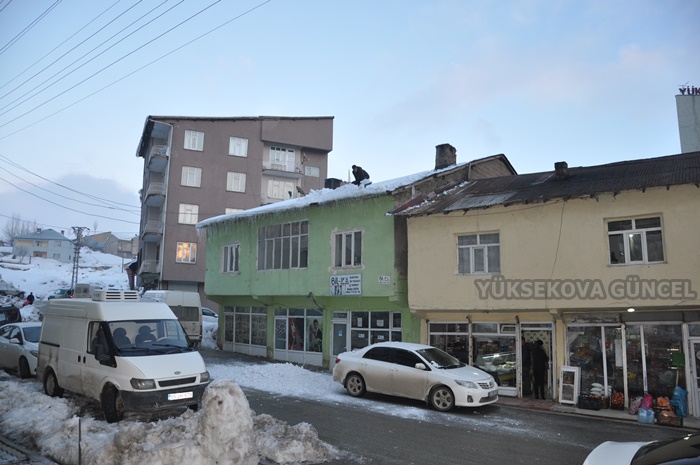 Yüksekova ilçesinde günlerdir süren kar yağışının ardından güneşin çıkmasıyla beraber bazı vatandaşlar çatılarda biriken karı temizlemeye başladı. Bir vatandaşın hiçbir önlem almadan çatıdaki karı temizlemeye çalıştığı görüldü.