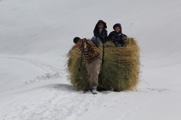 Oldukça zorlu geçen mücadelede küçükbaş hayvan sahiplerinin en büyük yardımcıları öğrenciler oluyor. Tüm yurtta okulların yarıyıl tatiline girmesi ile birlikte yaşıtları tatilde eğlenirken, Hakkarili çocuklar kendilerinden büyük işin altına girerek babalarına yardımcı oluyor. Her yıl aynı yöntemle otları taşımak zorunda kaldıklarını belirten Rahmi Ermağan, hayvancılık işiyle uğraştıklarını ve başka hiçbir iş bilmediklerini belirterek şunları söyledi: “Yaylaya sabahın ilk ışıklarıyla geliyoruz. Yaylamızın araba yolu yok. Eğer yetkililer yolumuzu yapmış olsaydı sonbaharda arabalarla gelir otları taşır ve bu eziyeti çekmezdik.”