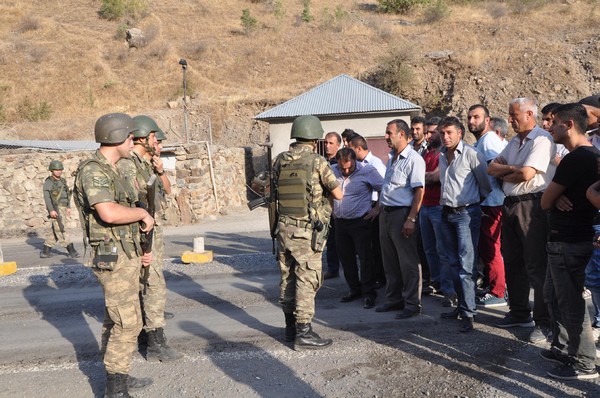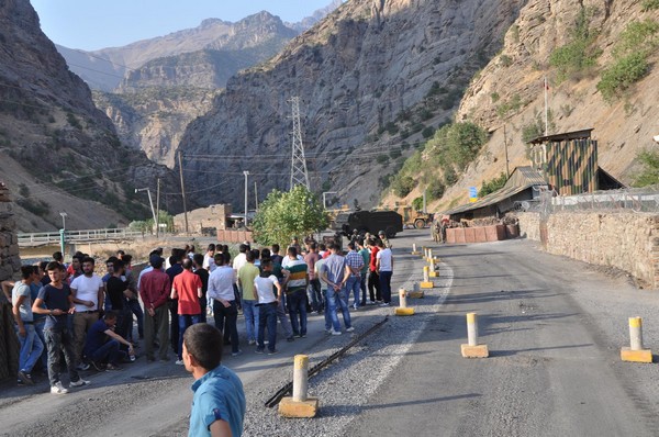 ÇUKURCA-Jandarmanın dün arama- tarama faaliyeti yaparken yola önceden döşenen iki mayın düzeneğinin PKK'liler tarafından uzaktan kumanda ile peş peşe patlatılması ve bölgede patlatılmaya hazır başka mayın düzeneklerinin de bulunabileceği nedeniyle dün kapatılan Hakkari-Çukurca karayolu halen açılmazken, bugün bölgeye canlı kalkan olmaya gitmek isteyen gruba da izin verilmedi. Aralarında Çukurca Belediye Eş Başkanı Servet Tunç ve Hilal Duman, DBP, HDP ilçe eş başkanları İHD Çukurca temsilcisinin de bulunduğu grup, Çukurca'ya 20 Kilometre mesafede bulunan Köprülü köyü Jandarma Kontrol noktasında durduruldu. Askeri yetkililer, bölgenin güvenli olmadığını belirterek grubun Şine bölgesine gitmesine izin vermedi.
