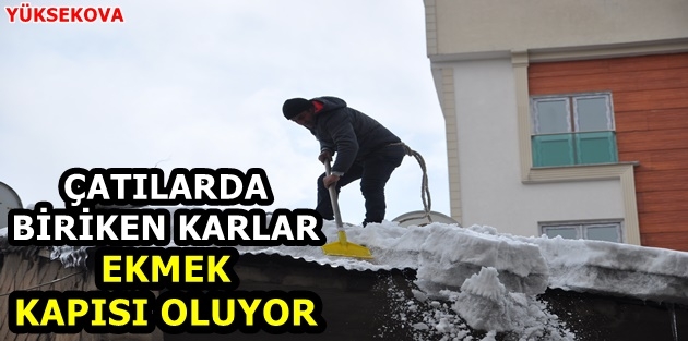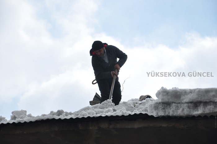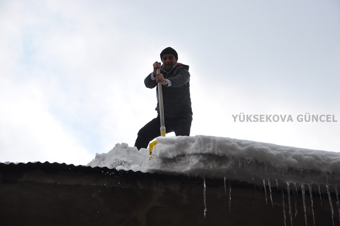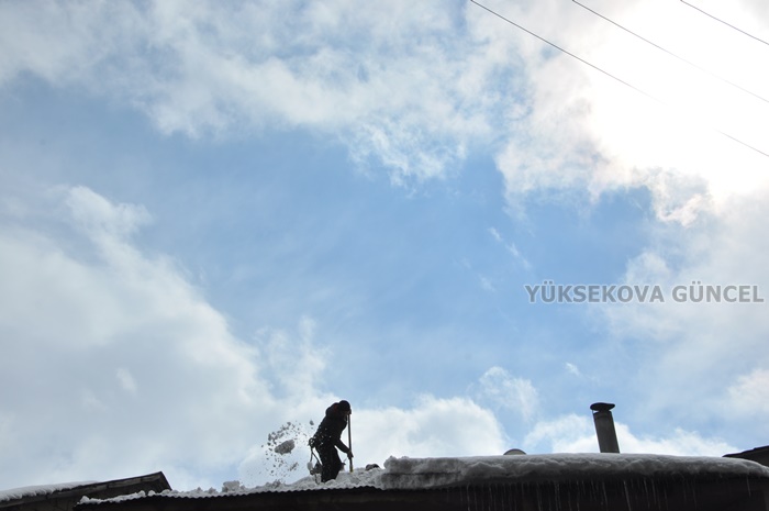 Yüksekova ilçesinde çatılarda biriken karlar vatandaşa ekmek parası oluyor.
