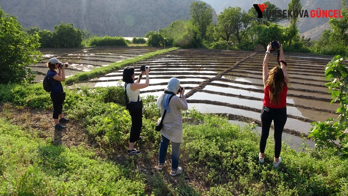 Yüksekova ilçesinde bir araya gelen 20 kişilik fotoğrafçı grup, Yüksekova Ekoloji Kültürel ve Dağcılık Spor Kulübü Derneğinin öncülüğünde çeltik tarlalarının merkezi olan Çukurca ilçesine geçtiler.