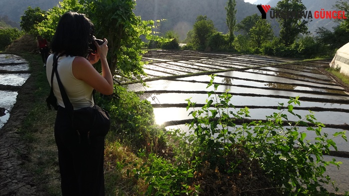 Özellikle gün batımına yakın çeltik tarlalarını fotoğraflayan grup, karşılaştıkları manzara karşısında hayranlıklarını gizleyemedi.