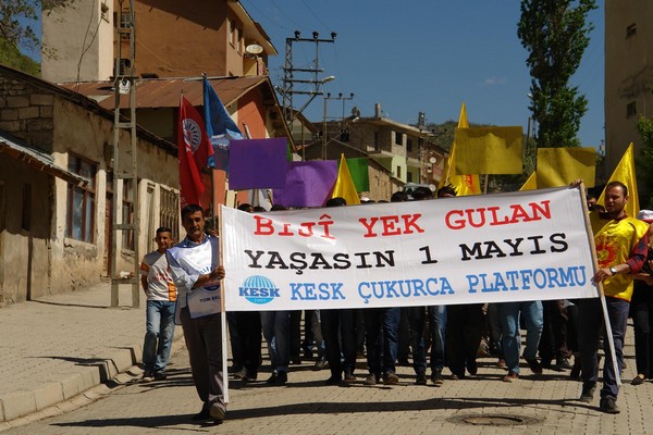 Hakkari’nin Çukurca ilçesinde Sabah saatlerinde PTT binası önünde bir araya gelen ve aralarında BDP ilçe Başkanı, Cumhur Erdemir, Çukurca Belediye Başkanı Servet Tunç, BDP İlçe yöneticileri, Belediye Meclis üyeleri, Barış Anneleri İnsiyatifi, Emek ve Demokrasi Platformu Bileşenleri, KESK, Eğitim Sen, Tüm Bel -Sen, Sağlık Sen, Meya-Der ve çok sayıda sendika üyelerinin olduğu yüzlerce kişi kortej oluşturarak, yürüyüşe geçtiler