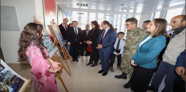 Gençlik Merkezinde açılan serginin açılışını İlçe Kaymakamı Temel Ayca, 2. Hudut Tugay Komutanı Tuğgeneral Bahtiyar Ersay ve ilçe Milli Eğitim Müdürü Ceyhan Doğan birlikte yaptılar.
