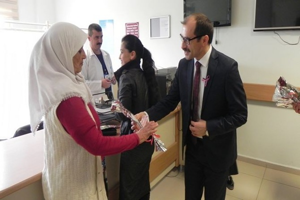 Burada tedavi gören ve çalışan kadın personellerin günlerini kutlayarak gül takdim eden Temel Ayca, hastalara da ‘geçmiş olsun’ dileklerinde bulundu./İha