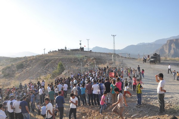 Çukurca ilçesinin 500 metre sınırın 49 taşına gelen kitle adına basın açıklamasını Ayfer Parlak yaptı. Parlak, IŞID'in yaptıkları katliamların kabul edilemez olduğunu ve Kürt halkının bu katliamlara sessiz kalmayacağını belirtti.