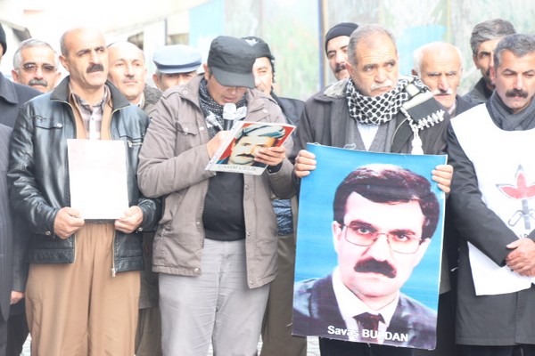 Bu gün saat 11.00'da bir arayan gelen Cumartesi Anneleri gözaltında kaybedilenlerin akibetini sormaya devam ediyor. Kasım Çelik'in akibetinin sorulmasından önce kısa bir açıklama yapan yapan, Yüksekova İHD yöneticisi Muhyettin Ünal, İran devletine seslendi. İdamların durdurulmasını isteyen ve son günlerde kürtler üzerindeki baskıya değinen Ünal, Kürtlerin haklı ve onurlu mücadelesine saygı duyulması gerektiğini belirtti.
