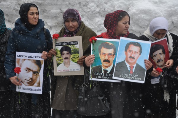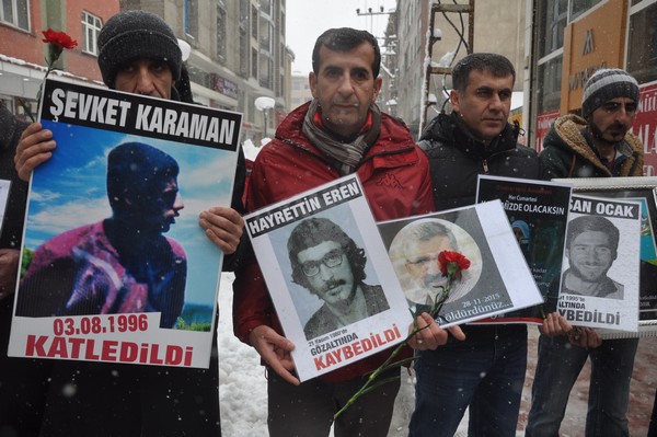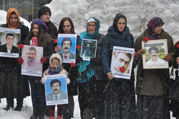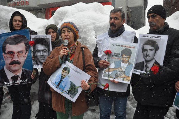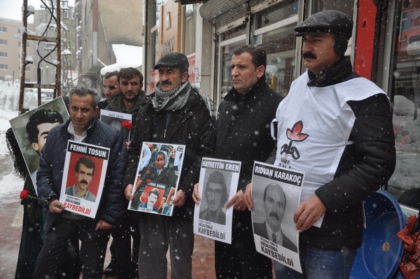 Konuşmaların ardından kayıp yakınları 5 dakikalık oturma eylemi gerçekleştirerek dağıldı.