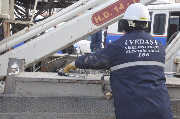 İlçenin çarşı merkezinde bir haftadır yaşanan elektrik sıkıntısı’ndan dolayı VEDAŞ çalışanları dondurucu ve soğuk havalara rağmen saatlerce trafo üzerin’de arıza gidermek için büyük bir çaba gösteriyor. Ekiplerin zorlu çalışma gayreti hemen hemen ilçenin her tarafından gösteriyorlar.
