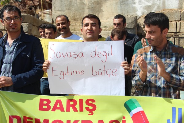 AKP hükümetinin halkların inançlarını ve taleplerini görmezden geldiğini aktaran Çolakoğlu, “Bağlar, Cizre ve Yüksekova ilçelerinde halkın kendi iradesiyle açtığı okulların kapısına mühür vurulmuş, bahçesinde nöbet tutan ve aralarında Eğitim-Sen üyelerinin de bulunduğu çok sayıda yurttaşa gaz bombalı ve tazyikli suyla müdahale edilmiştir. Fakat bu baskılar mücadelemizi her geçen gün daha fazla yaygınlaştırmaktadır” dedi.