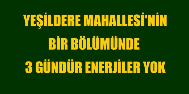 Yeşildere Mahallenin 3 yol mevkiinin büyük bir bölümünde 3 gündür arızalanan ve bir türlü giderilemeyen arıza yüzünden mahalle sakinleri defalarca VEDAŞ'a gitmelerine rağmen muhatap bulamamalarından yakınıyor.