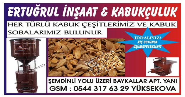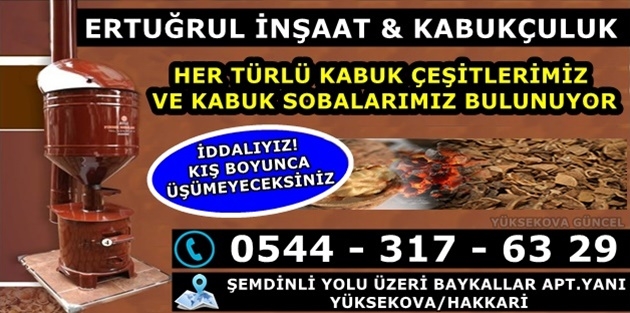 Yüksekova'nın sert kışıyla mücadele ediyoruz. İddalıyız kışın üşümeyeceksiniz. Şemdinli Yolu üzerindeki iş yerimizde her türlü kabuk çeşitleri (Fıstık Kabuğu, Fındık Kabuğu, Kayısı Çekirdeği, Şeftali Çekirdeği) ve Kabuklu Soba çeşitleri ile hizmetinizdeyiz.