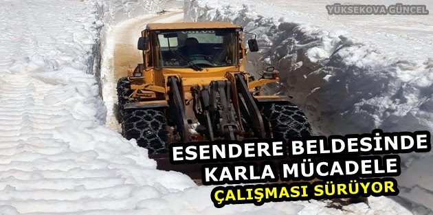 İlçe merkezine 47 kilometre uzaklıkta bulunan ve İran sınırında olan Esendere Belde Belediyesinin karla mücadele çalışması tüm hızıyla sürüyor.